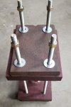 Made a new press for making stacked leather blocks. 1" steel top and bottom plate with 1.25" paperstone in between and 1/2 all thread. The steel should keep any flex out and the paperstone will keep the leather flat and clean. Used what I had laying around minus the all thread.