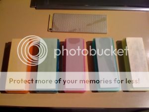 I'm typically known at my unit for putting an excellent edge on just about every knife, and many guys pay me to sharpen their tools, so I get to handle all sorts of knives and edges. In my 2 years of doing this, I've never had to sharpen a knife with an edge this steep. While it's only steep on the one side, I estimate that it's included angle is somewhere between 60-70 degrees at its belly- which is more than most hatchets and some axes that I've sharpened. I played with idea of using a file to sharpen it, like I do with axes, but I decided there is no way I can hold the knife stiff enough with one hand on the knife and a file on the other to give it a pretty looking edge. So I broke out my 800 grit diamond stone and spent nearly an hour on it. It was a lot of experimenting, and I ended up with a lot of marks that weren't even close to the edge, but I was ok with giving everything about a centimetre from the edge a bit of a polishing as it looked like someone before me had also tried sharpening it, but quickly gave up due to its steepness. The following photo shows roughly how steep I had to put the knife on the stone before the stone met the edge at a good angle.