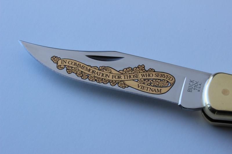 Browning 006 Vietnam knife from Browning's Living History series. This knife is documented on the 2007 SP list as the Buck model 610. The knife features a Khan Hin wood handle from the Ho Chi Minh trail and was limited to 1975 pieces commemorating the year the Vietnam War ended. There are a number of customs by Joe Houser based on this blade.