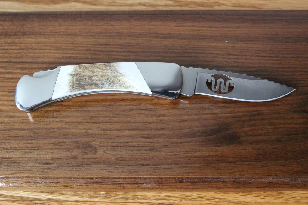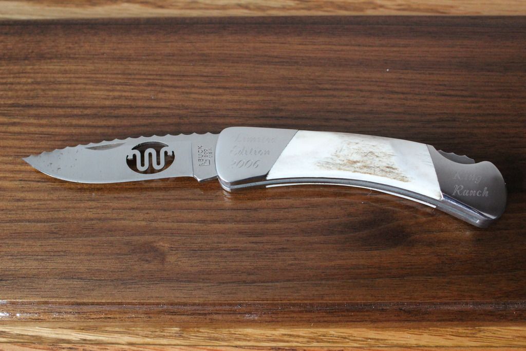 Latest arrival in my mailbox. Model 152 Fixed Blade Ranger. 2022 BCCI Limited Edition of 200. Sun bleached Elk, brass frame, and satin 420HC blade. BCCI tang side is etched and the 50th/Anvil side is stamped. I wonder why this pseudo 112 knife gets the 50th Anniversary tang stamp but real 112's coming out of the Custom Shop this year do not. Overall, I like the saddle leather sheath and very pleased with the knife I received. As of this (Saturday) evening they are still available to BCCI members. If this had been a BOTM it would have been sold out in hours.