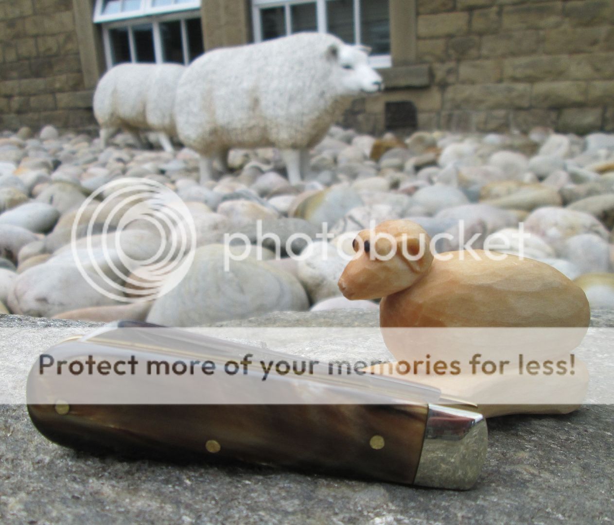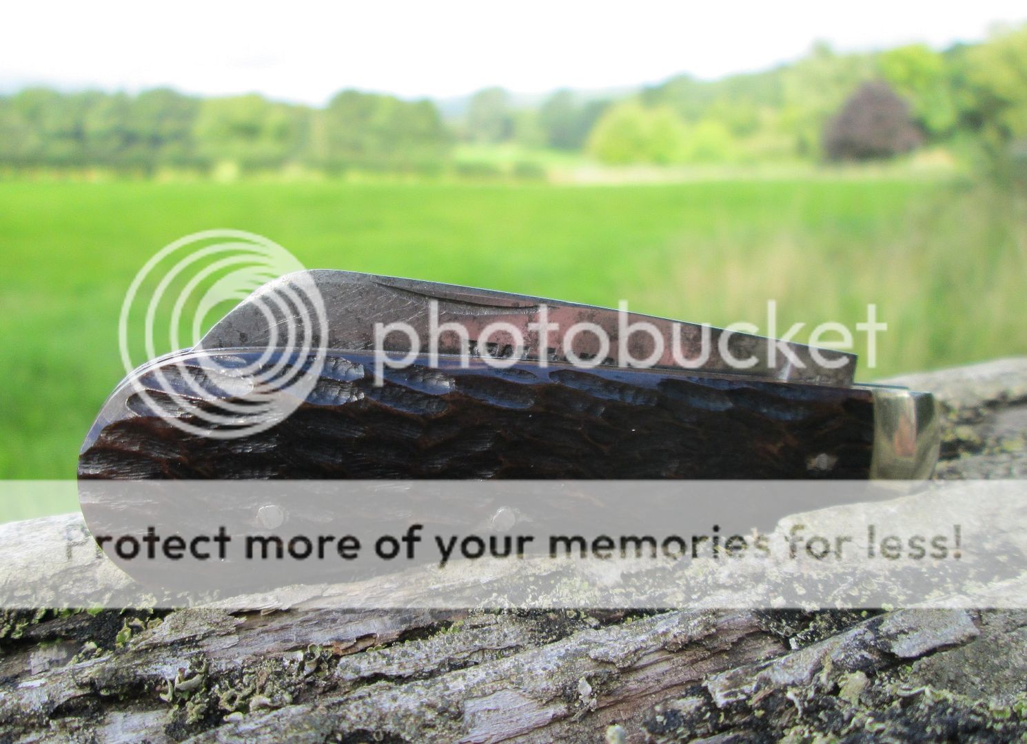 Took the Kerry Hampton trapper to church service this morning (it thanked and praised its maker ... Kerry) and after coming home replaced it with the GEC #14 boy's knife. The #14 has had a couple of weeks of use with slicing strawberries, peppers, limes, grilled chicken and sausage and so on that the blades have gotten a nice dark patina already. Even the backsprings are getting slightly gray contrasting with the stainless liners.