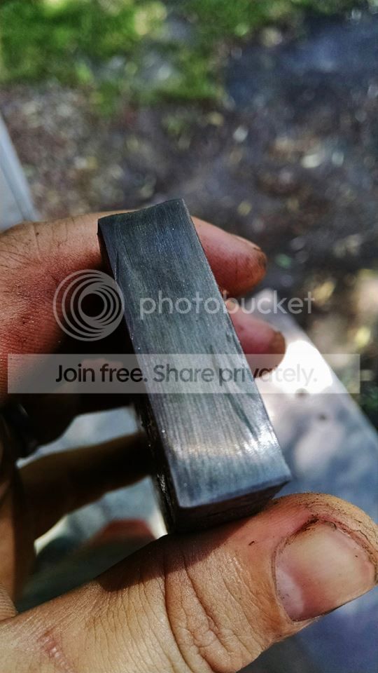 Next I flattened it into a 1 1/4 in x 1/2 in x 12 inch bar, quickly ground the surface and etched to check the pattern: