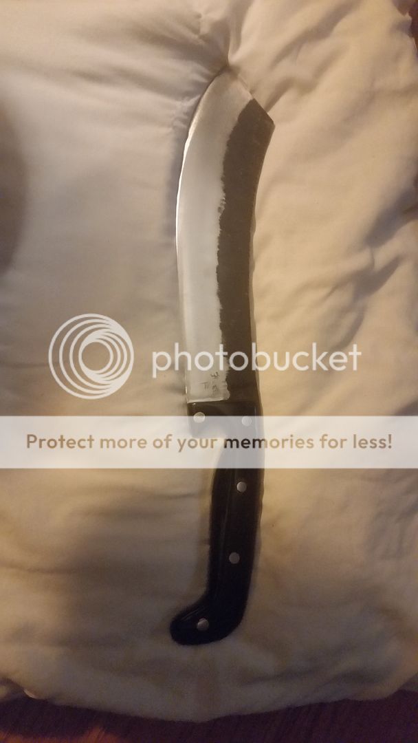 Part of my recent large order, a Farmcata by Anil. While the blade work is pure perfection, the handle details were not up to snuff with my likes. Yes, I know I'm a perfectionist and the Kami's don't have that amount of time at their leisure. This is simply a Farmcata untouched besides about six hours on the horn handle. It's perfectly tapered for my grip, fit, finished and perfectly to my liking.