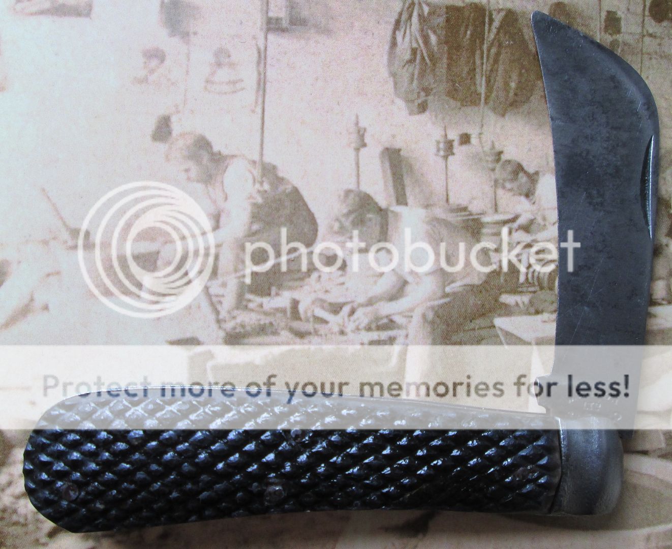 After sorting his box full of knives into three separate piles after he asked me which ones were valuable- "junk"(franklin mint type techno blades with Harley pipes on the handle)"collectibles"(a lot of old army knives and a couple of worn out penknives)and "mine". Here are the spoils.