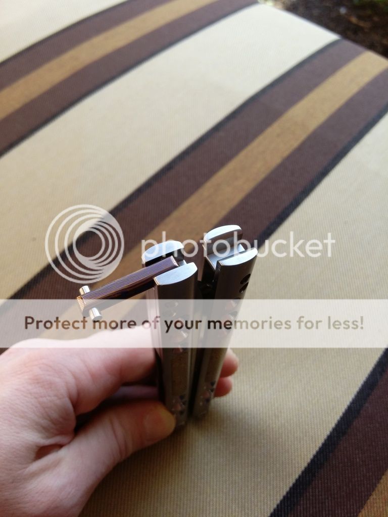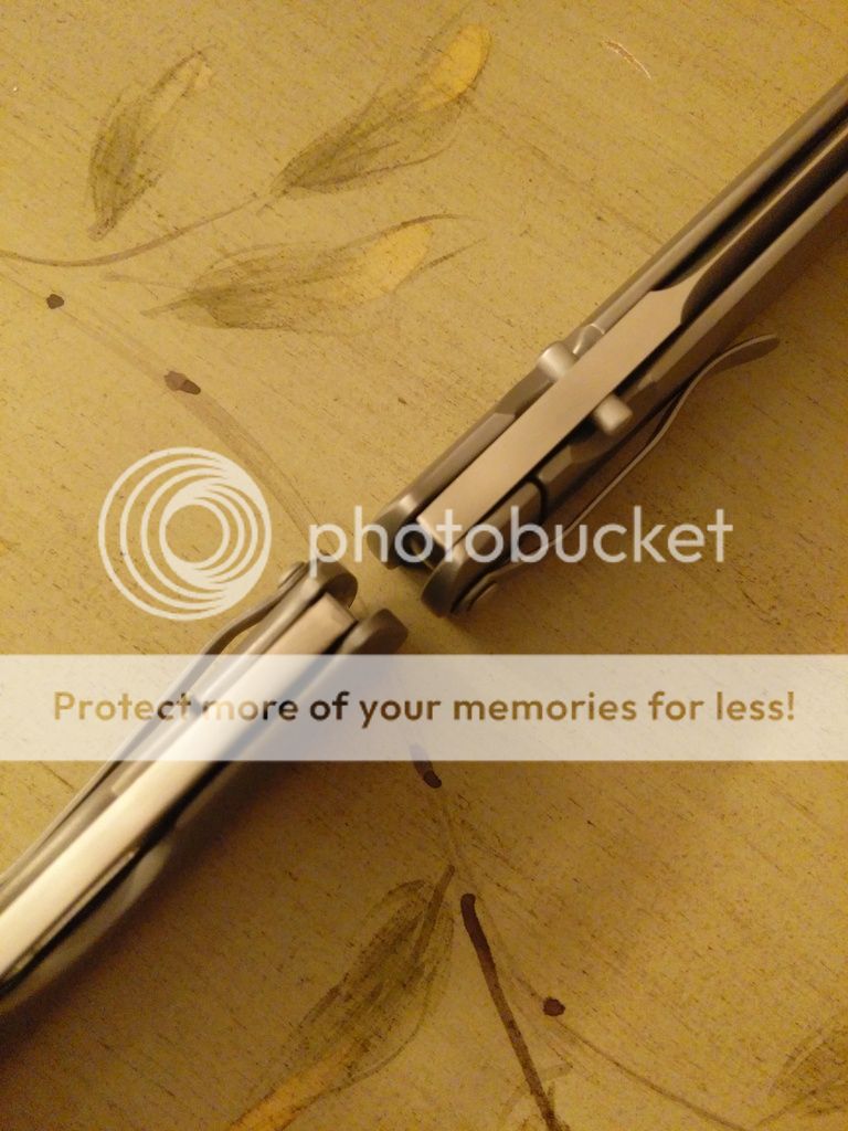 Here is a comparison photo to show the blade thickness. On the left is a normal thickness XL TnT and on the right the 0.20" Dr. Death for sale.
