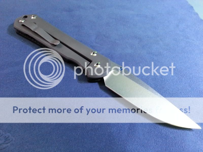 Second is the infamous Kershaw TiZDP Leek. Never carried or used by me, but the previous owner did flip the pocket clip at one point and there are some marks left on the Ti because of it. There are a few light "snail trails" on the handles but they are very light, and very hard to capture in pictures. The edge looks to be unused, and never resharpened. As far as I can tell it was likely carried once or twice, but overall the knife is in excellent near-new condition. I do not have the box/papers unfortunately.