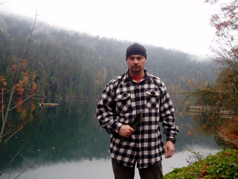 Anyways I couldn't wait to take it out today an try it out. First of all let me say that while this knife certainly is very, very sturdy it ain't the dead weight that many would have you believe, in fact I wore it horizontally in the small of my back and was running through parts of the forest and jumping across streams and didn't even notice it being there.
