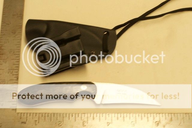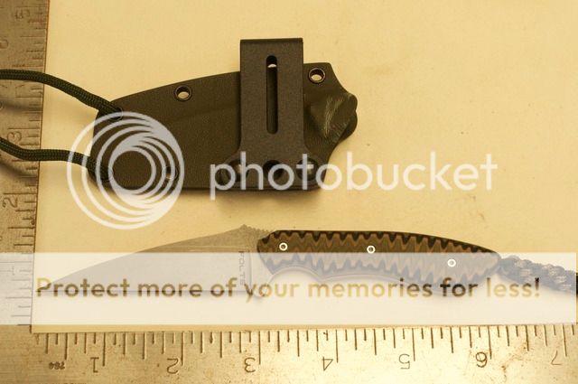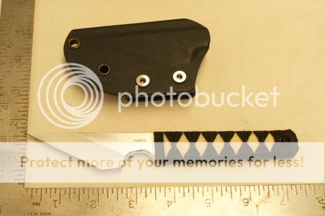 This one has been lightly used (or at least has scuffing from the kydex). S30V blade that is heat treated by Tony Bose.