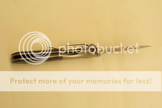 3.1" blade of N690 that is differentially finished. 4" closed length for the ultimate EDC! Action is super smooth on this, but I'm not sure if he used a bearing system, but it is quite nicely done.