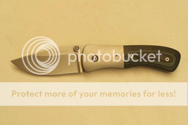 Titanium bolster, black G10 handle and CPM154 blade steel. Brand new from maker.