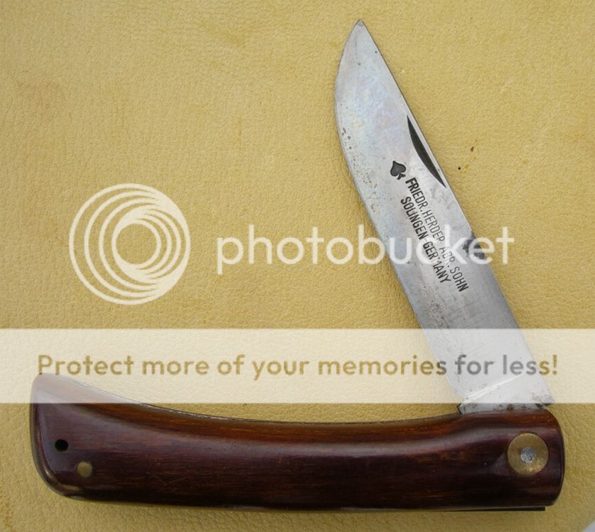 Friedr. Herder Abr.Sohn, Germany, 4 1/8", Hardwood handles, blade action is a bit stiff but fine. needs drop of oil.