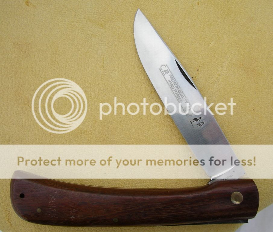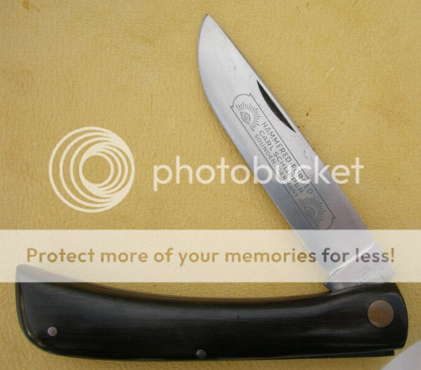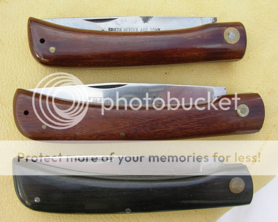 Schlieper Eye Brand ("3 Eye", considered best ever) 4 5/8" with Hardwood handles, strong spring but is pinchable and be sure to keep fingers clear when closing for fear of amputation. Steel is 1095 here and i think the same for the other two.