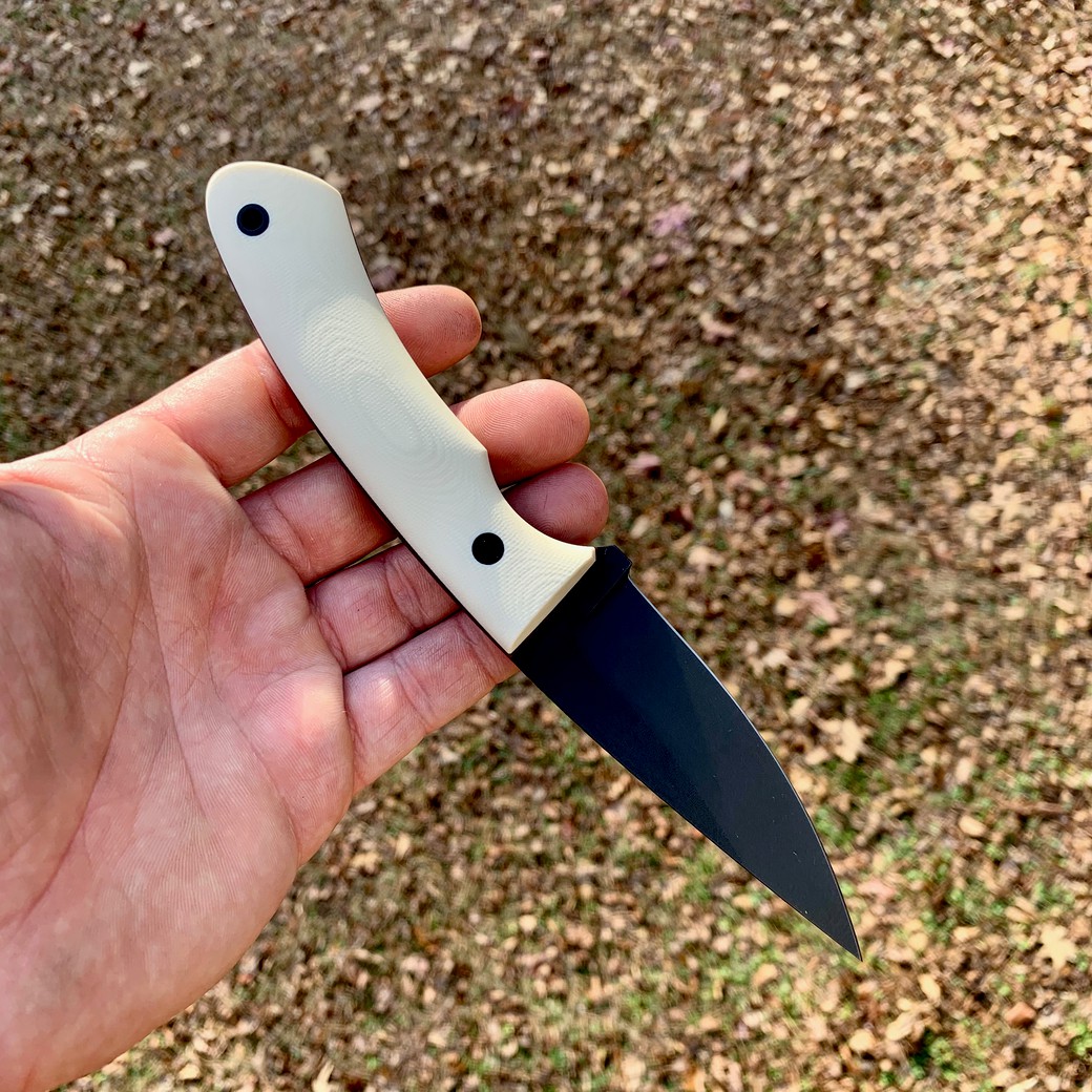 - Ivory G10 over Natural Canvas Micarta w/Black G10 Accent Liner (Bead Blasted)