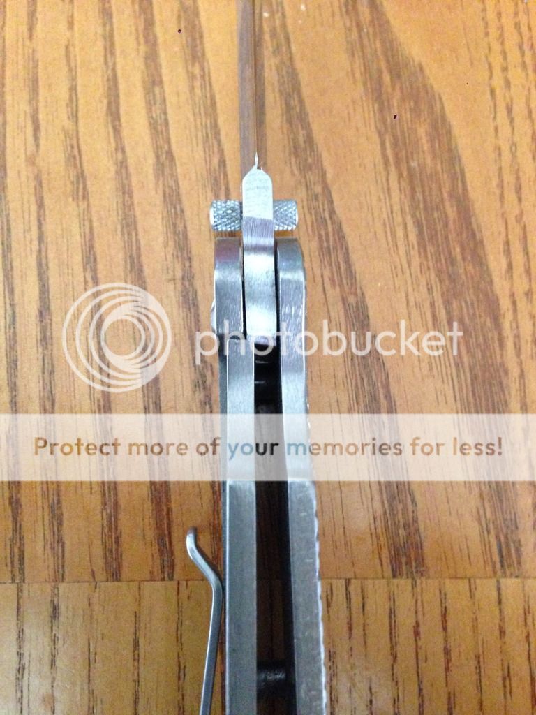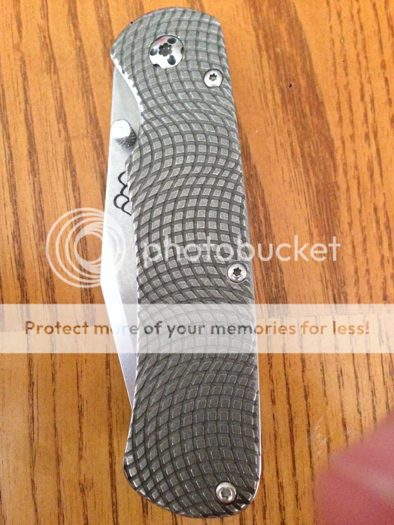 This has been used and carried but still in great condition. Edge has been sharpened and is still very sharp.I put a very small sharpening notch at the heel of the blade as shown in pics. Jim (of three sisters forge)rounded off the end of the handle which makes it way more comfortable in hand. Blade is a tad off center when closed. Lock up is solid no play in any direction. Blade is s35vn. Dual thumb studs. Comes with papers and Jims business card. These do not come from TSF in a box. Asking for $115 shipped conus only. Email or pm any questions thanks.