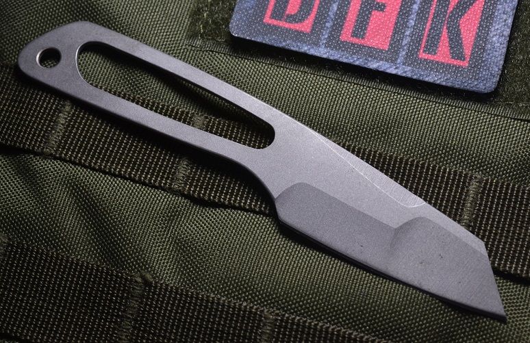 6al4v Titanium with 72 RC Tungsten Carbide Edge - excels with abrasive materials such as cardboard, very aggressive with meat, seatbelt material, vegetables, cloth, cord, softer materials, rope, raw bone, paper, etc...