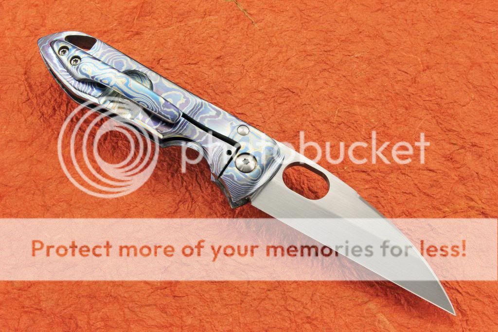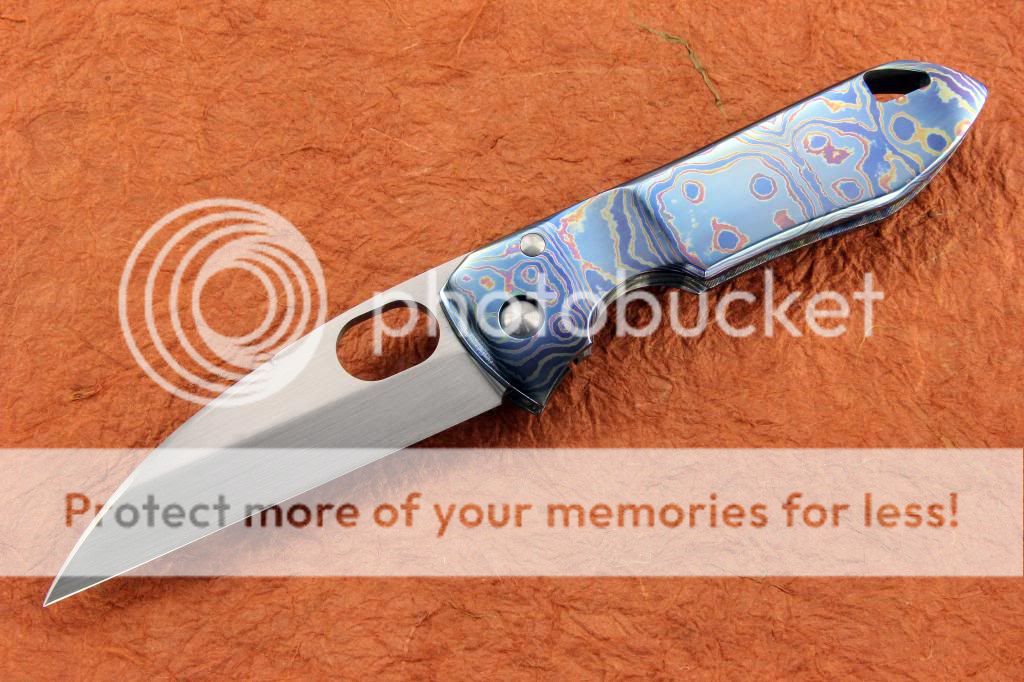 well here it is, my finest creatin to date ( i think). a fully integral tiascus folder. courtesy of the folks at aks!. this knife was a year in the making. i actually bought the peice of timascus last year at blade..... i hung on to it for months until i felt i was good enough at integrals to not screw it up. and i think i did good.