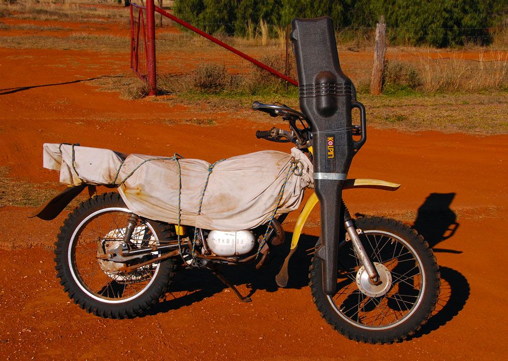 Imagine my surprise when I was exploring the old shed at the back of the homestead and realised I was not the first to attach a Kolpin case to dirt bike... though the fencing wire and tin are not as pretty as MY solution...