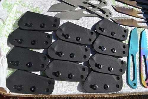 They come with a custom Kydex sheath. The sheath has removable hardware for flexibility and ease of cleaning.
