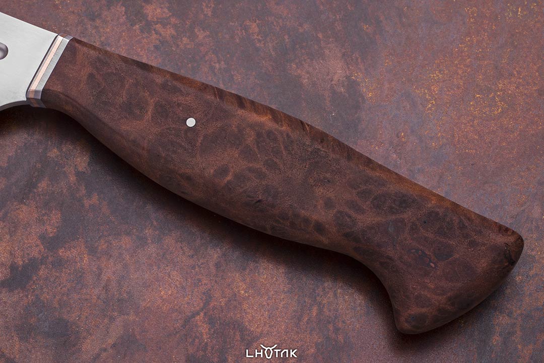 Just finished this Kitchen Knife Prototype, made from heat treated ATI425 Titanium. HT was done by @Mecha. Handle is stab. Redwood burl and some Titanium and Bronze. OAL is 11.7" Blade is 7" long and .110" thick Weight is 3.24 oz