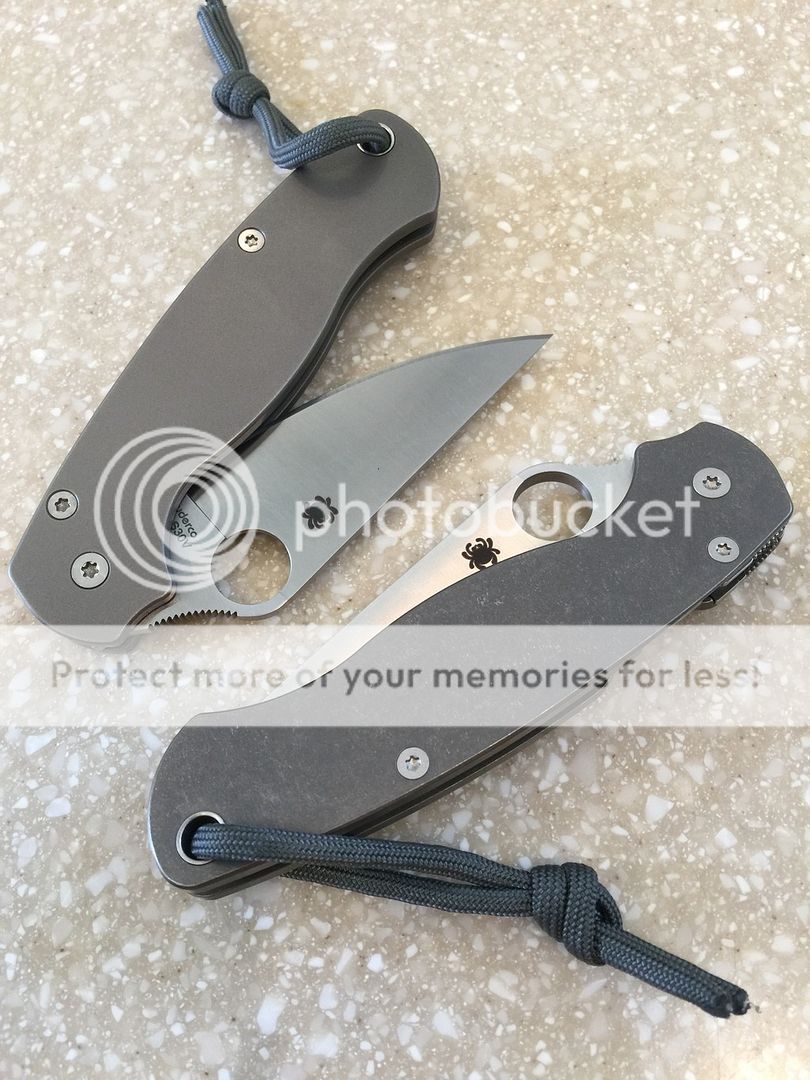 Up for sale is a Spyderco PM2 with aftermarket titanium scales. Fit and finish on the scales are top notch, bead blasted finish. Not looking for any trades. CONUS shipping only.