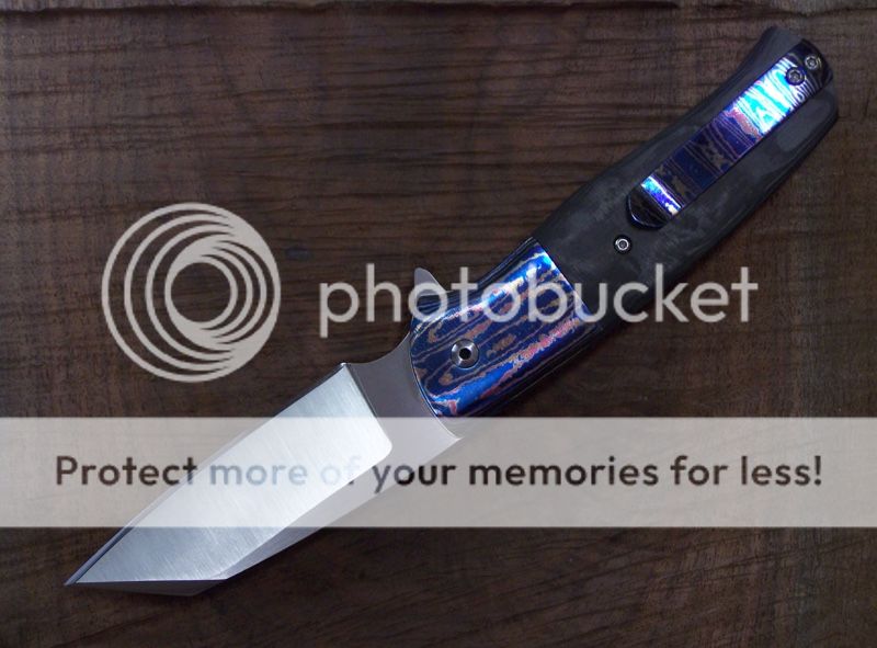 HANDLE: Full titanium Liner Lock, Marble Carbon Fibre handle with timascus bolsters, clip and backspacer.