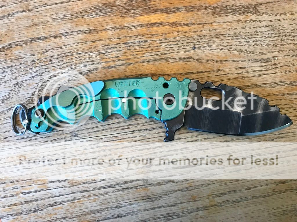 This is a Todd Heeter MOW with the 3V blade in an apocalyptic finish. This will come with the extra backspacer. This just came back from a spa treatment from Todd Heeter. This is super sharp and is a monster of a knife. $2500 NET shipped
