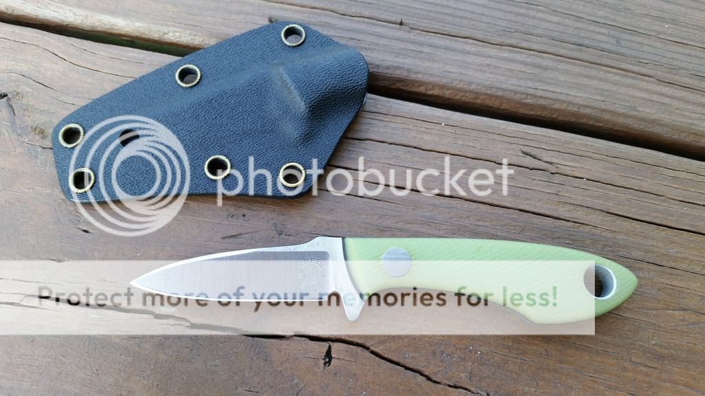 Hey there guys, this is a Tom Krein TK-1 that I recently acquired in M4 blade steel. It was a user and shows some patina'ing around. It is only stained, not like rust pits. Tom will also do spa treatments as well. I sharpened it up, but it is a touch too small for my big hands. Pictures show the condition as best as I can capture.