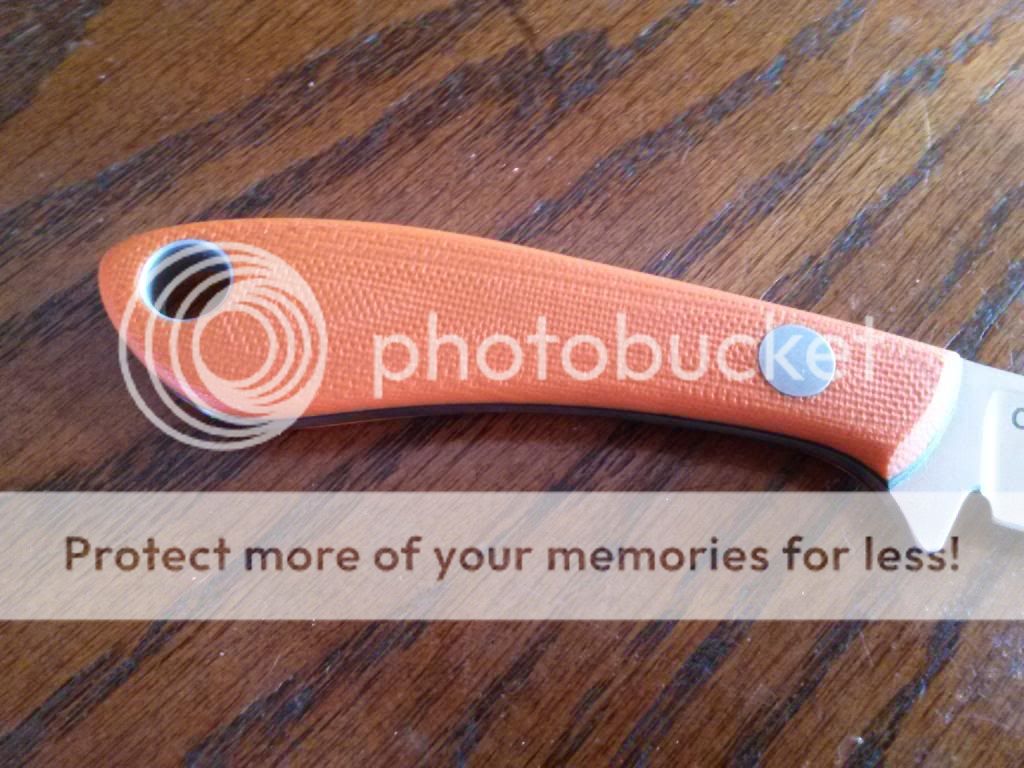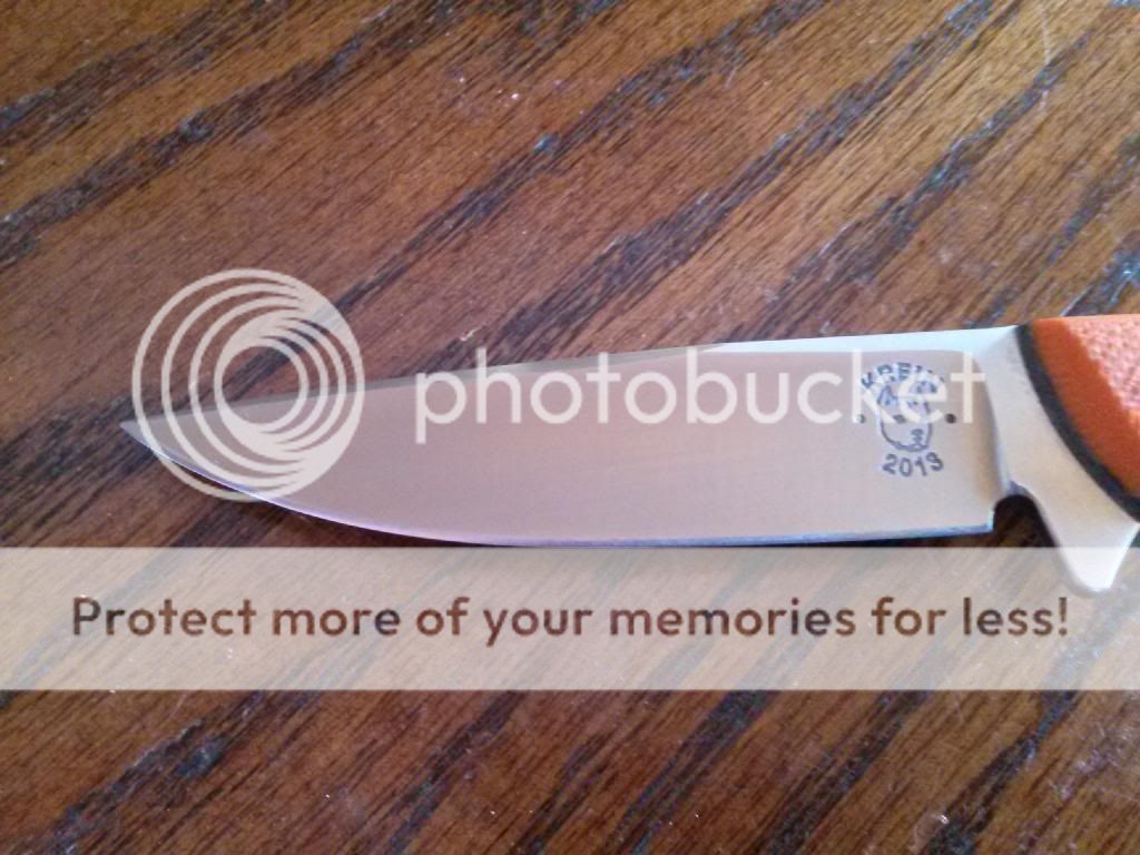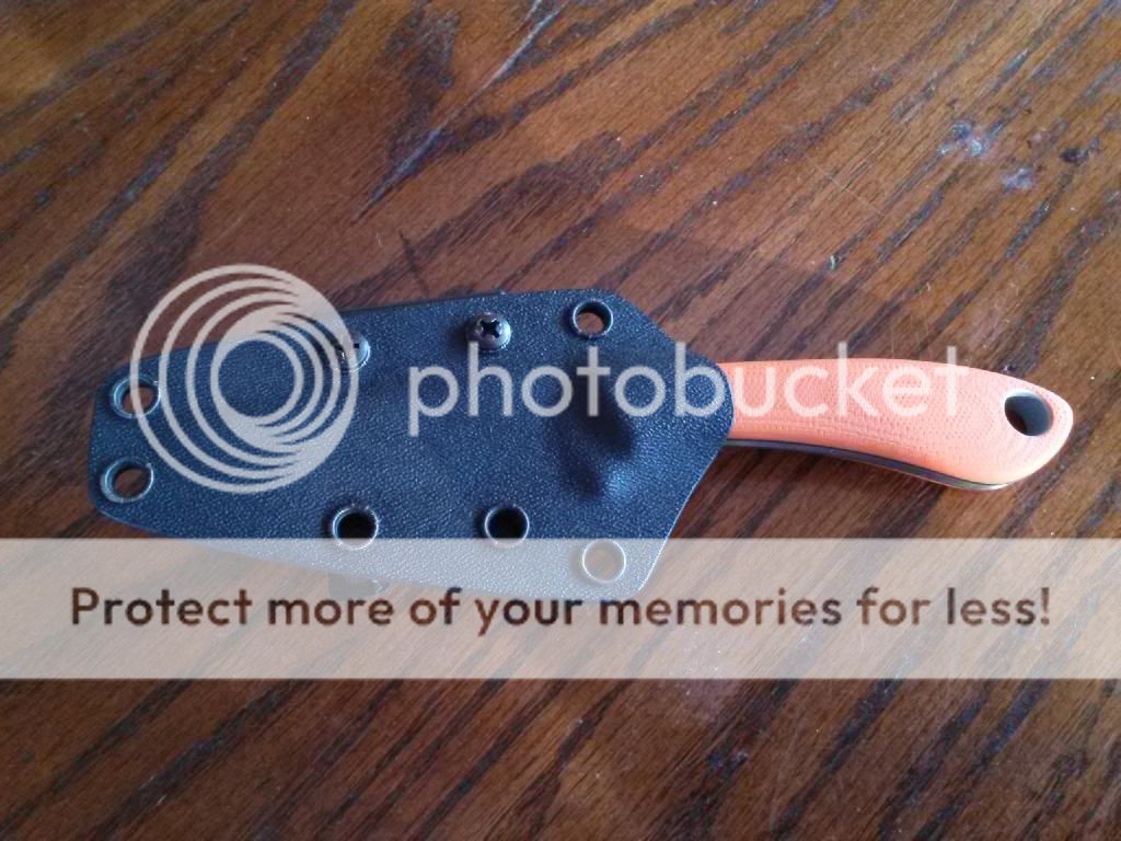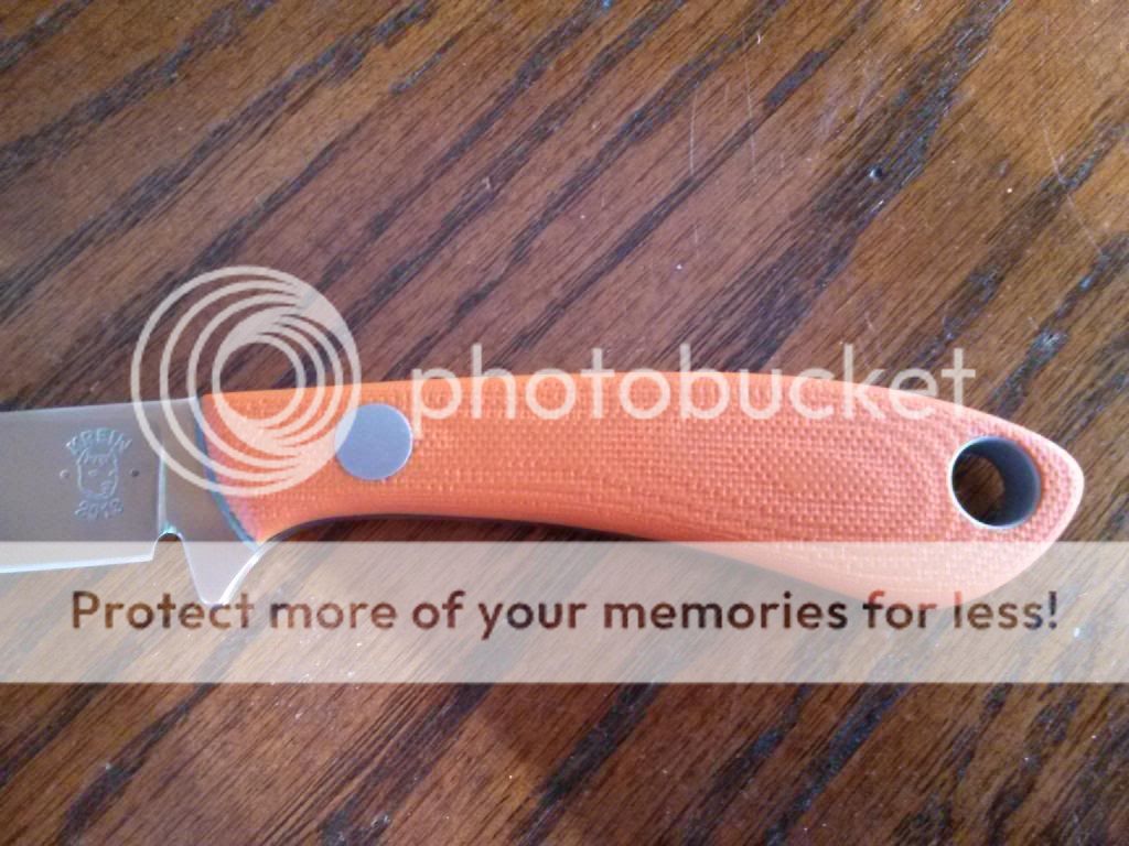 Don't want to part with this, but money is tight. This is a gently used Tom Krein TK-11 Bird and Trout in orange g-10 and CPM- D2 steel. It has some light kydex scratches but nothing serious at all. It looks in great condition and still has many years of service ahead of it.