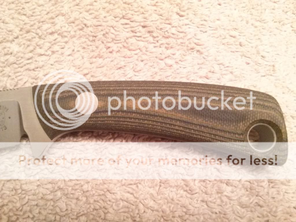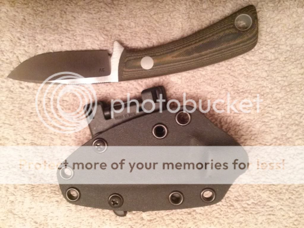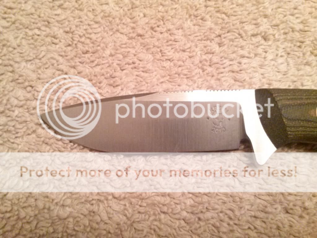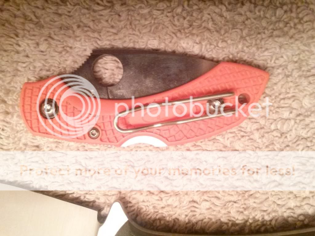 Hey all, this is a Tom Krein TK-4 spear point version in layered black and orange G-10, and 3V steel. I have sharpened it and carried it for a few hours. While sharpening it it did get the slightest mark where the grinds come together at the swedge. It is super minor and I have tried to photograph it as best I could. Comes with a Kydex sheath with a molle clip. The Spyderco freebie is an orange Dragonfly. A nice little big knife as they are described.