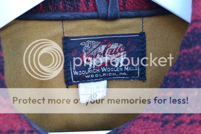 Next is a Made in USA Woolrich Hunting Coat (Style 603). It's a size 40 and fits me well with a long sleeve shirt on underneath. This is a heavy 100% wool coat that is very warm and looks great. 4 pockets in the front, 1 large game in the rear (game pouch). This coat is very clean and nothing has been in the game pouch. Though the coat is from decades ago, it's in great shape and has hardly been worn. Every button is original and tightly sewn in place. Warm cuffs and a tall storm collar. There is a small repair on the interior. Chest is 23".