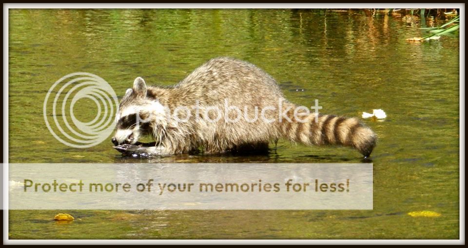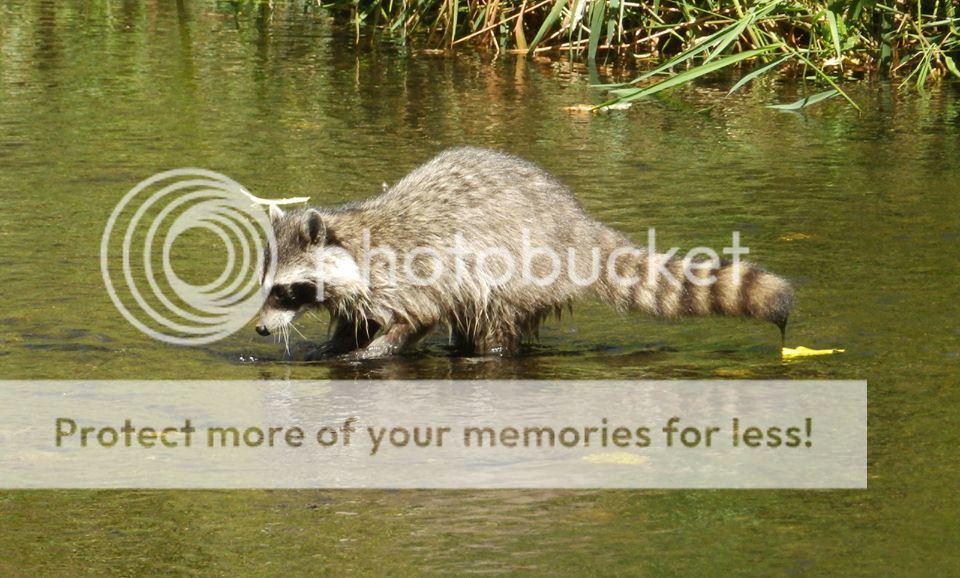 When we got back down to the bottom we were lucky enough to see this Raccoon foraging in the river, other than keeping an eye on where Snicker was he couldn't have cared less !
