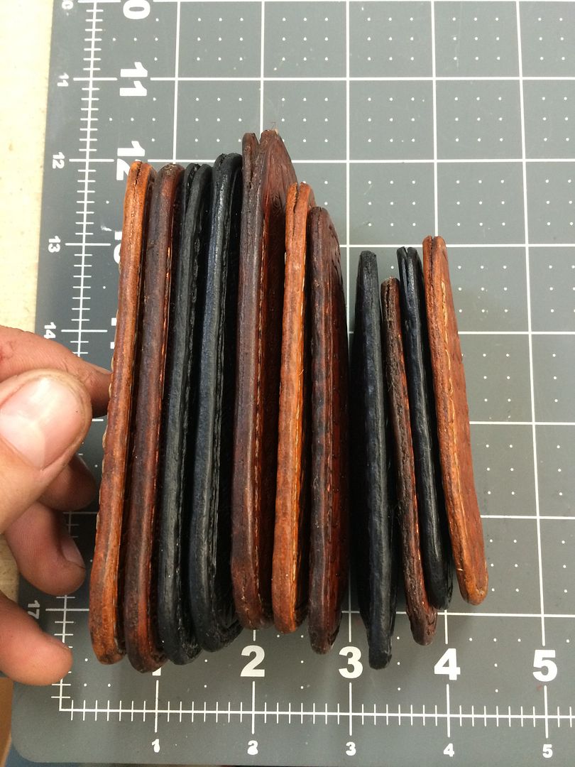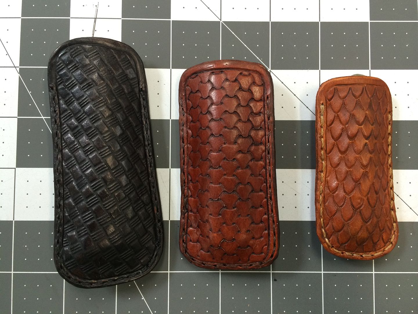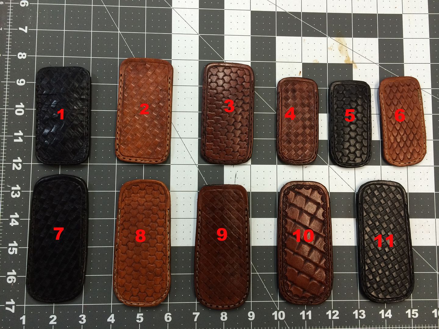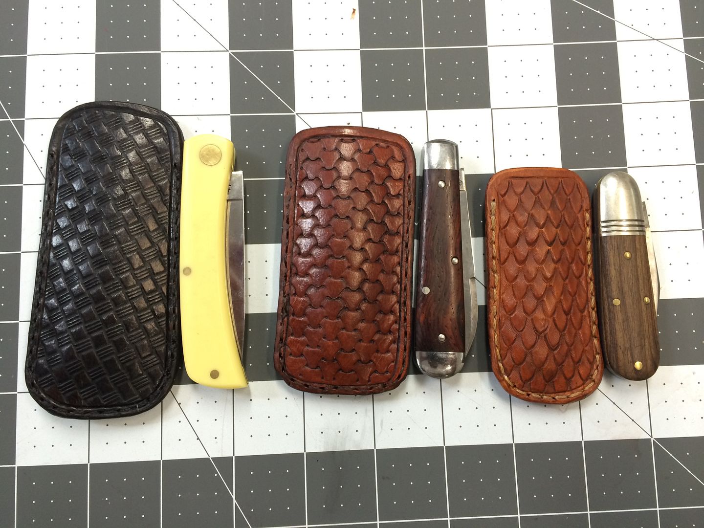 Here are some leather pocket slips for sale. They are hand tooled, dyed, and stitched.