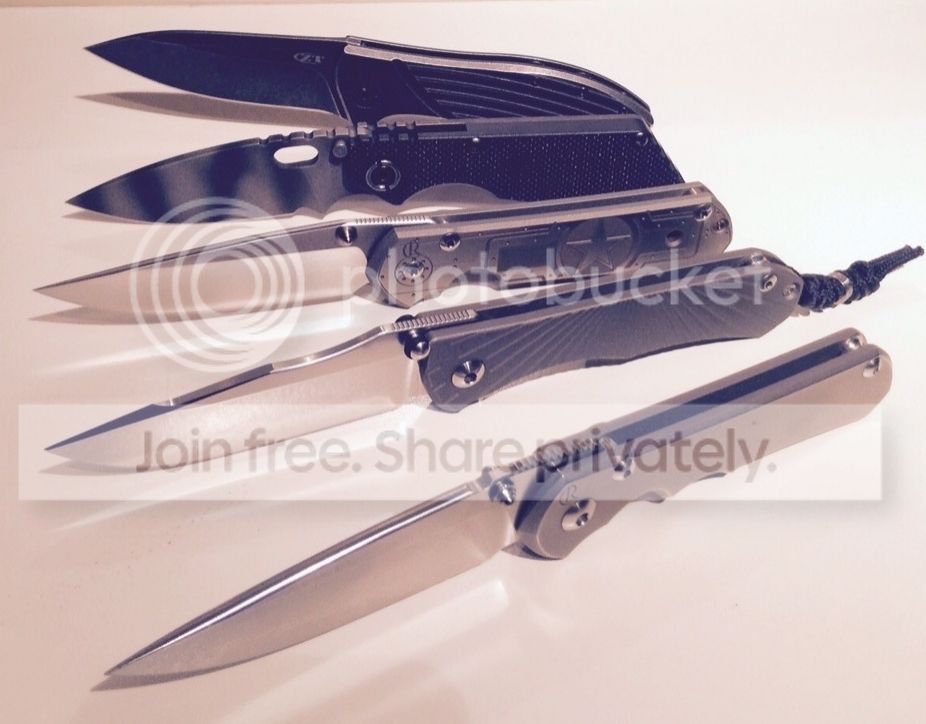 Conspicuously and purposefully disqualified from my list is anything with a titanium-on-steel lockup. That includes CRK, Strider, Hinderer, et al. To design and produce what would otherwise be great knives with such poor execution of something so critical as the lock is unforgivable to me. (EDIT: Of course, your mileage may vary, "IMHO," caveat emptor)