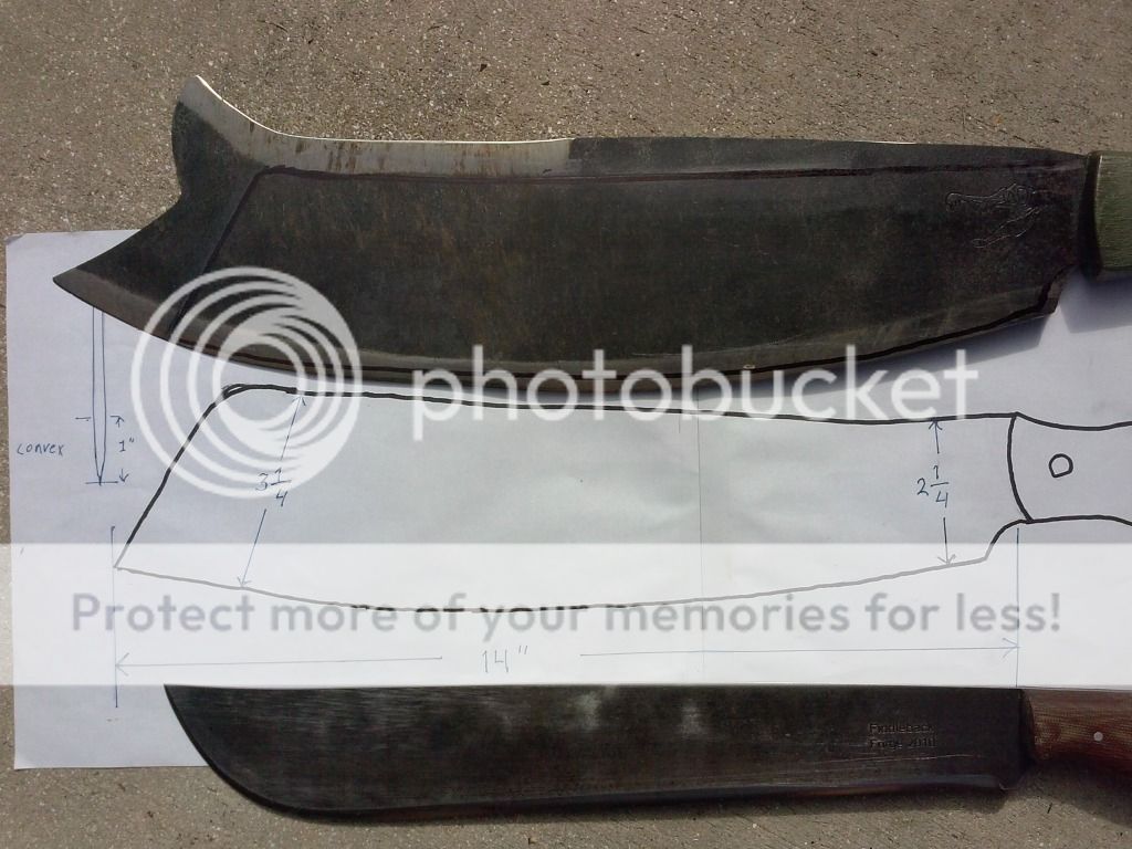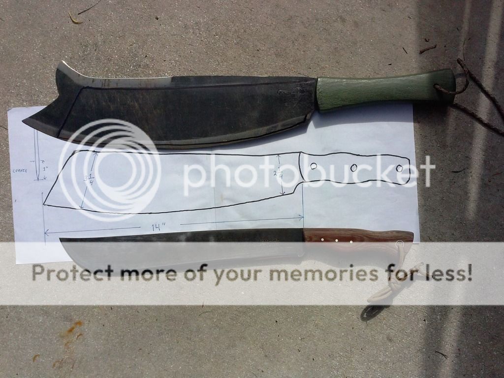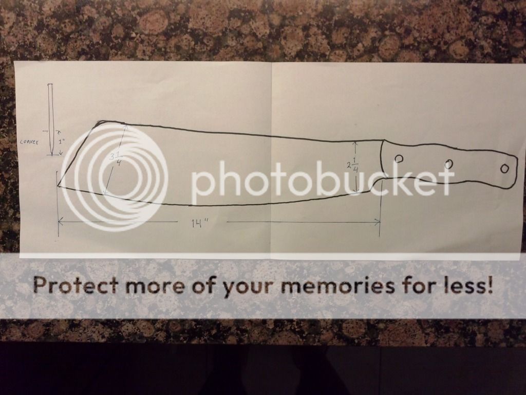 I'm thinking about having this machete made by Hunter Martin of Huntsman knives. I've had this image in my head forever and finally free handed this sketch just to get something on paper. The handle design is already taken care of so I'm looking for some input on the blade.