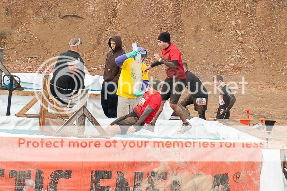 The Arctic Enema isn't difficult to get through. It is just the most intense cold for about 5 seconds. As soon as you get out you start to warm right back up, especially if they put it somewhere in the middle of the race and you are already hot. If you look at me in the picture as I am jumping, you can see I aimed right for the base of the barricade. This basically allows you to jump over half of the ice. Let your momentum from the jump carry you under the barricade and pop up on the other side. Its then about 12 feet until you get out.