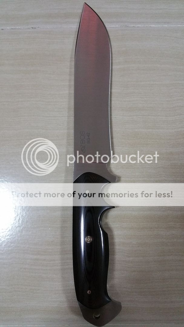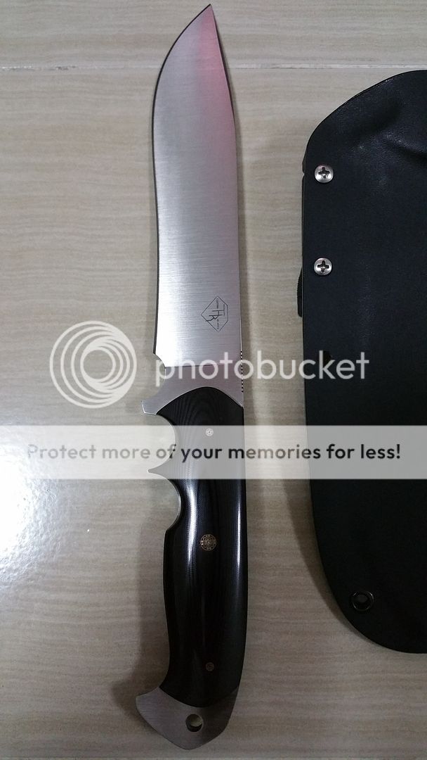 Trace Rinaldi Tempest- Have only seen 1 other Tempest in 10 yrs of collecting Trace's knives, and it was in S30v. Blade length(incl choil)- 8" of 1/4" thick BOS HT BG42 steel. Trace usually used 3/16" thick S30v for the Tempest. As far as I know, this is the only BG42 one made. Handle is very comfy, maroon micarta with mosiac pins. Comes with kydex sheath with tek lok. Mint condition, never used or carried. $645+3.5% fees, includes registered shipping with tracking and insurance from Singapore. Thanks!