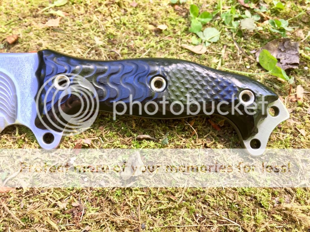 INFI with what I believe are Black Paper Micarta slabs, but have been told may be G10. Gorgeous either way.