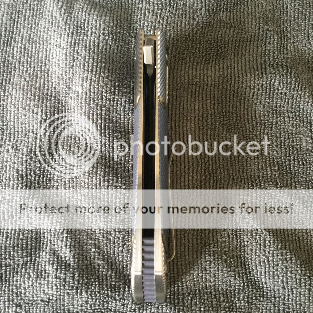 Brian has a Stainless Steel replaceable detent nub, lock face and over travel stop, all in one. Add to that the GTC bearings and this is a very smooth and solid flipper. He also uses a nested style pocket clip that is attached within the backspacer.