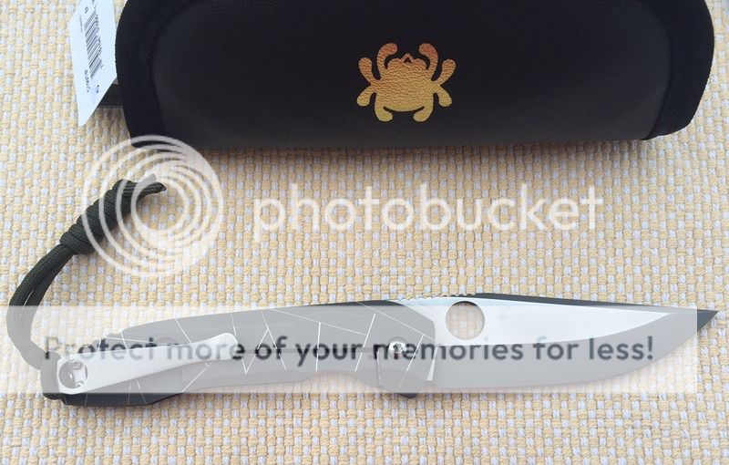 Spyderco Nirvana received brand new less than a week ago. It's been carried but not used more than opening a plastic bag or 2, though I did put a 2 tone "working" style finish on the blade (400 grit sandpaper on the flats) and an aftermarket deep carry clip. This is an awesome knife and will make a great user for someone, but the ergos don't really work for me. Locks up 100% solid, with NO LOCK STICK at all, blade centers, extremely sharp, smooth action, and no issues. Includes all packaging (zipper pouch) and paperwork along with original clip.