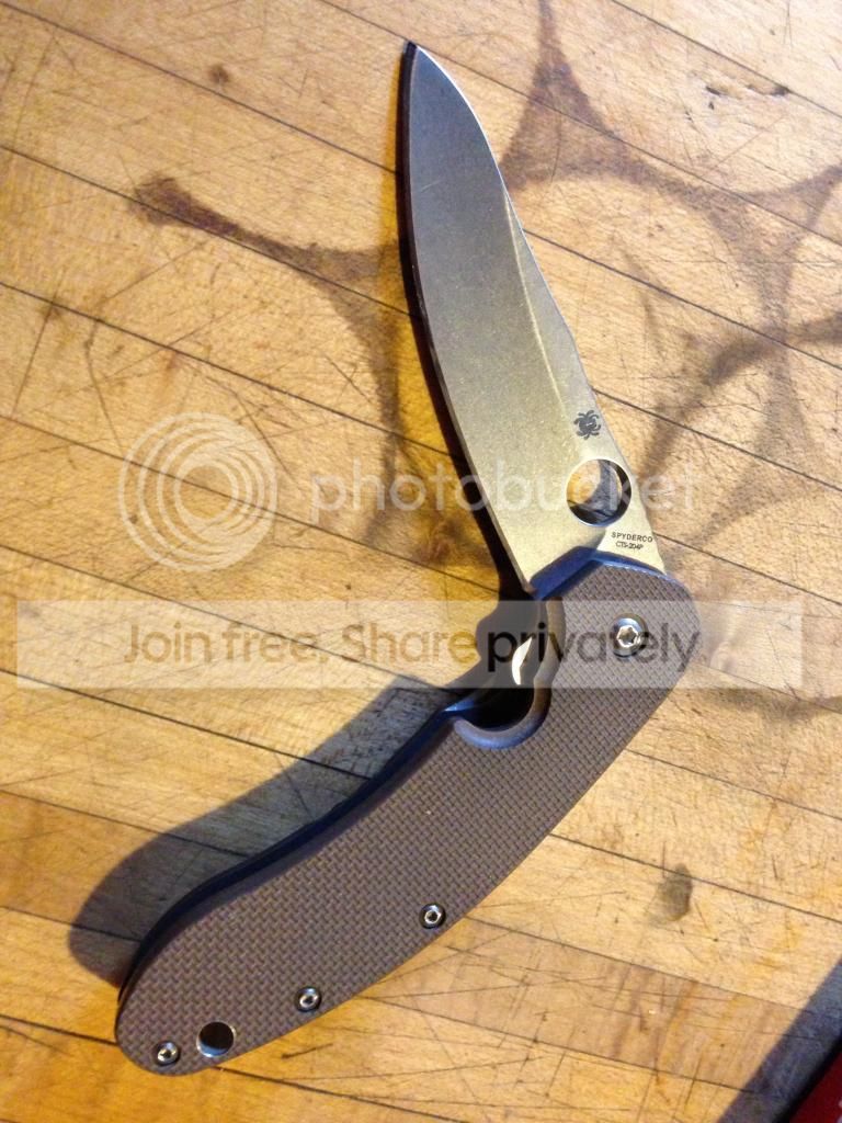 OK all, for your consideration today I have a Spyderco Southard which came to me LNIB, with a mirrored edge (done on a W.E. I believe) and which I carried for aweek or two before putting it back in the box. It does have a couple light marks on the blade and some scuffing on the high point of the clip but other than that it is still like new. Rock solid lockup, silky smooth action and shaving sharp edge. I am interested in other spydercos, particularly sprint run Para 2s Dodos and Millies as well as Striders, Lionsteels (I can add cash) or any REASONABLE offers of plain edge folders. No fixed blades, serrations, multiples or lowballers please. Leave a response in the thread then send all questions or offers via email.