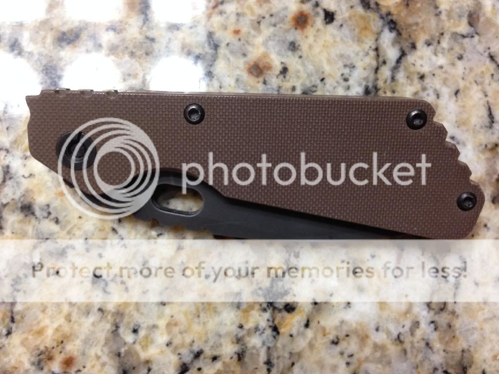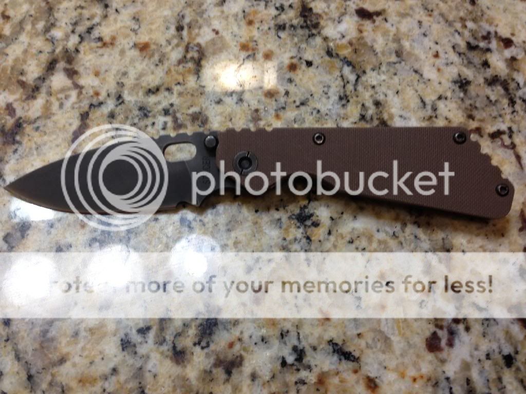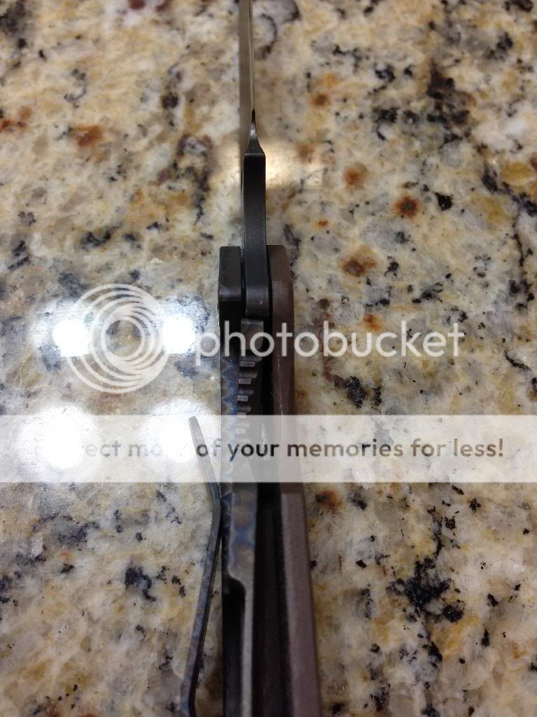 Knife has been used/carried/sharpened, but is in overall good condition. The G10 has some wear marks, the blade coating has some marring, and it has an overall "used" look to it, but it is not beat up or broken up. The blade has some slight side-to-side play and upon initial lock engagement there is tiny amount of vertical play, but once seated there is no vertical play. The lockup is quite late. See pics below.