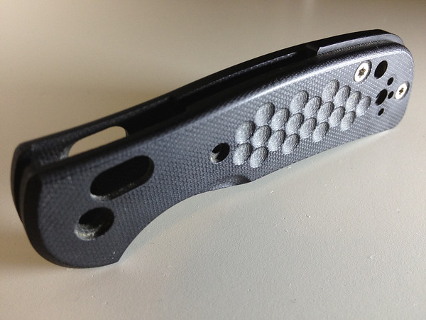 1) Black G10 Custom Kevin Wilkins mini griptilian scales. These were used by the previous owner, but I have not used them at all. Really great condition, but not flawless.