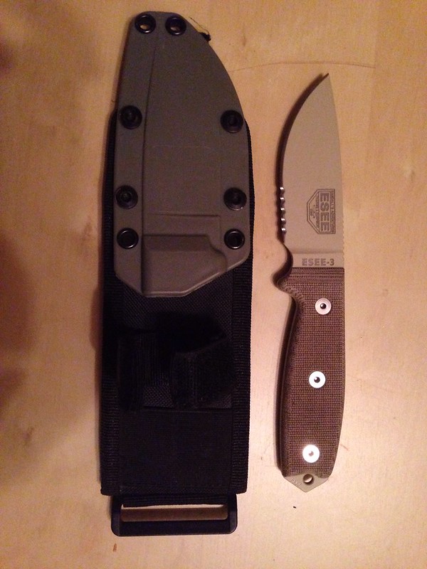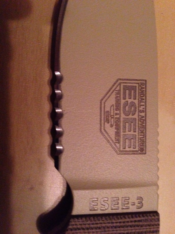 This knife is in really great shape. The only issue with it is a small line on the blade near the serrations. Other than that this thing is mint. Sheath is in great shape too, a few scratches here and there on the Kydex or plastic. Never sharpened, factory edge. Comes with plate for attaching to sheath, not photographed.