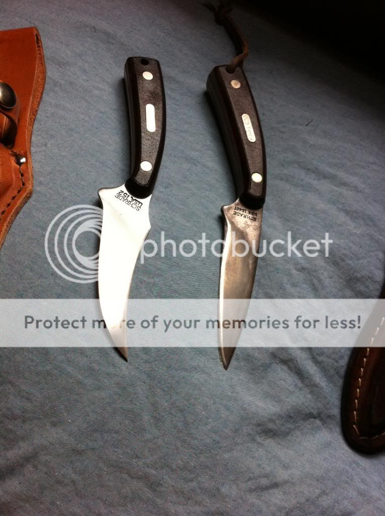 So a few months ago I ordered an Izula (I know it's not traditional, wait for it) just to try out a small fixed blade. I've had other, longer fixed blades before but never really used them for anything other than gardening. I liked it a lot, but wanted something more traditional (told you it was coming). I remember having a Schrade Sharpfinger when I was young, but traded it off for a Kabar way back in the early 90s. I decided that I had to have another one.