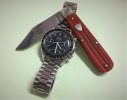All stainless, nice top hat crystal, beautiful dial and hands. Dead on NH35. Good looking! Of course, the rubber had to go and was replaced with some nice chromexcel.