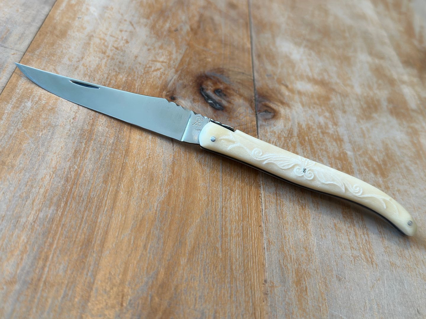 Large (20/30cm), highly decorated knives were a traditional gift to newlyweds who certainly used them. In the days when knives were usable tools ivory handles were not rare.Well I use mine, but we have a saying over here: “you don’t use a screwdriver on a nail…” same goes for knives. Laguioles are no Randall #18 or Robert Parrish 8” Survivor. So I use mine for cooking and other chores at home, but rather a Forge de Laguiole or an Laguiole Aubrac than a Latreille or Munoz. I often have one in my pockets, a simpler, cheaper one at work and sometimes a high end one when I go out to the restaurant or similar. But the most “use” they see is when I take them out to clean and oil them, fondle them and just let myself be swept away by the beauty of the knives and the talents of the craftsmen that made them.