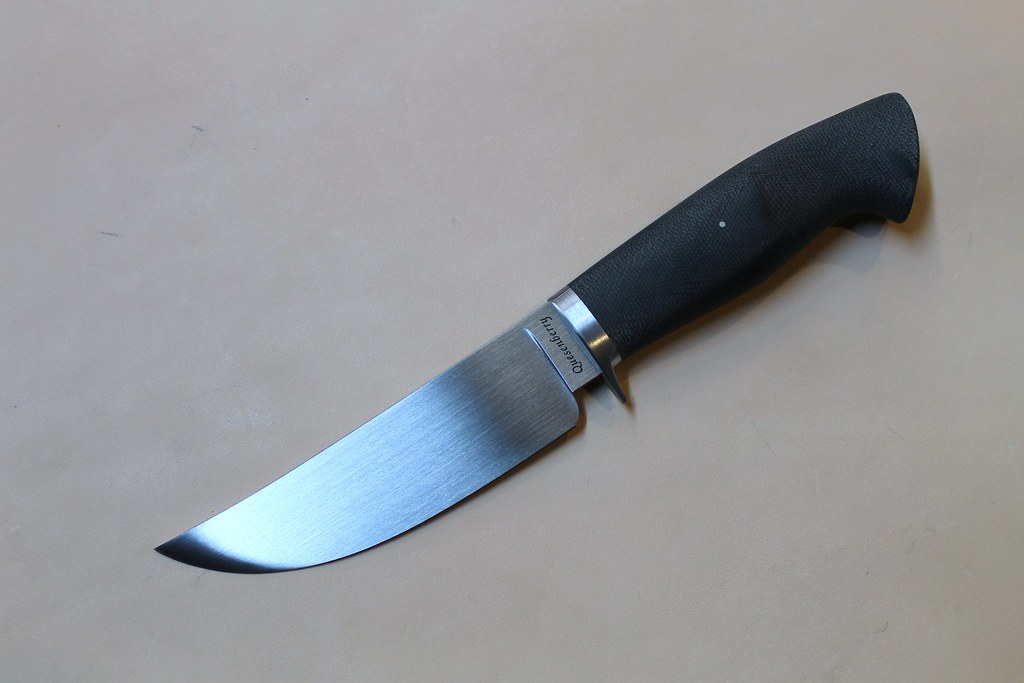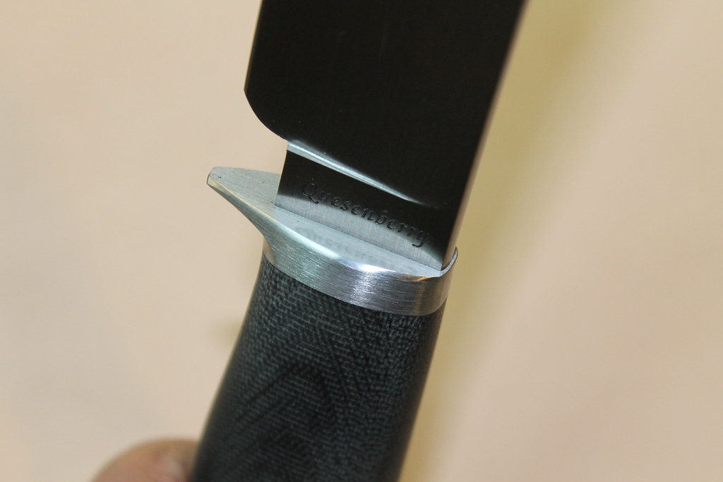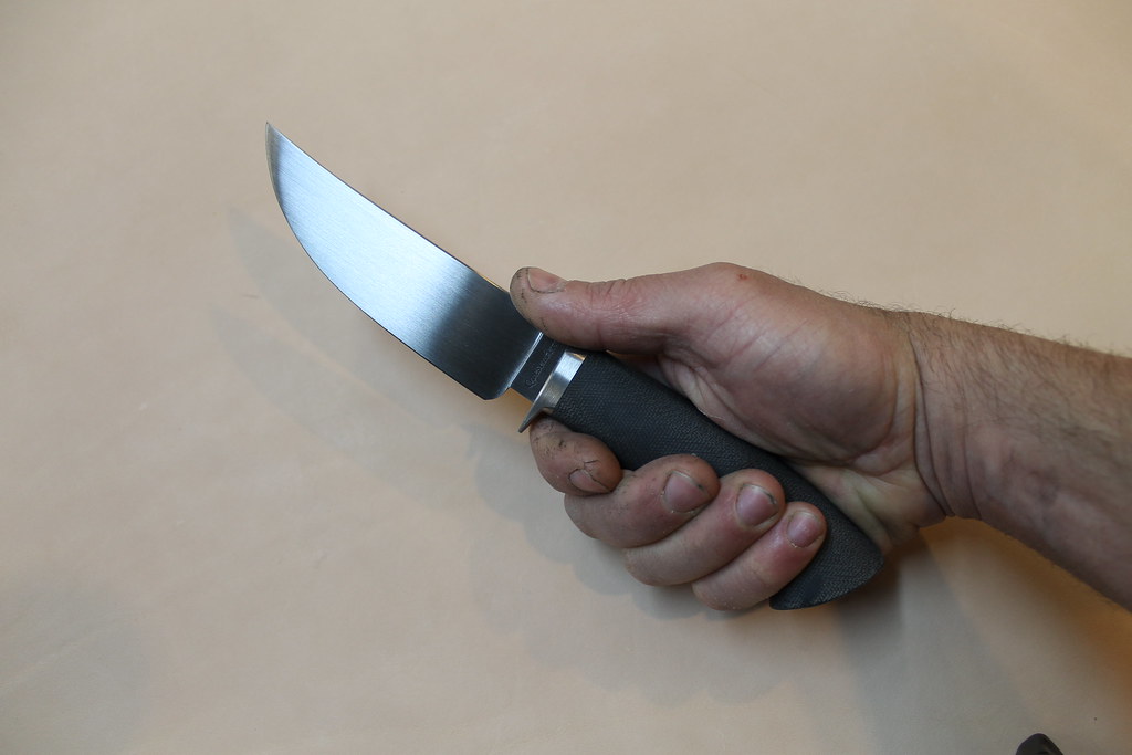 This is a trailing point hunter forged out of CruforgeV. The guard is 416ss and the handle linen Micarta. It has a 5" blade and an OAL 9 7/8". The whole thing is finished with 320 grit and I can't imagine taking the CruforgeV any higher than that. This stuff laughs at sandpaper:grumpy:. This one is going to an avid hunter and I hope he uses the hell out of it. It's a nice change making something that you know is gonna get used. Don't get me wrong, I like to make the fancier stuff, but odds are they will never see blood.