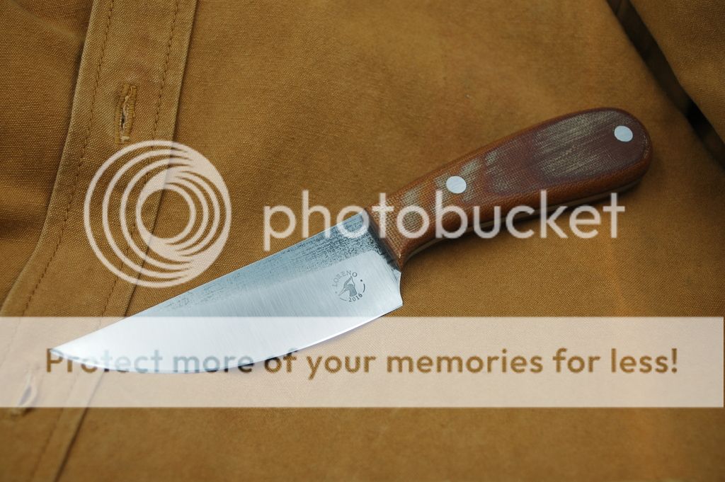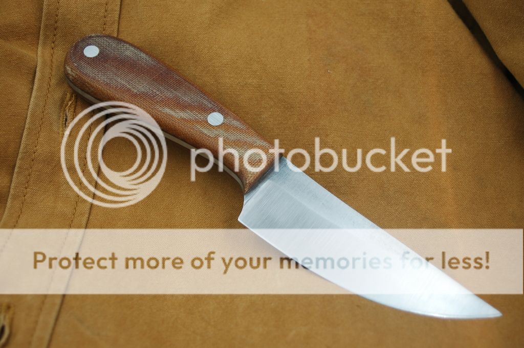 Selling a trailing point in Hitachi Blue Paper #2 with natural canvas micarta scales and kydex sheath.