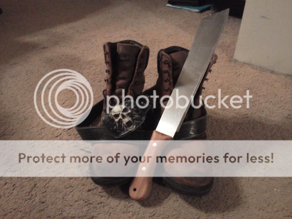 Ok so I put a new handle and reshaped the blade on one of my trams and wanted to top off the mods with a vinegar patina. I heard the best way to do large blades is soak paper towels and wrap around the blade, so thats what I did for a good hour and a half. And contrary to what i thought was gonna happen, only the bevel was effected. It wad laid propped up edge down so i first thought oxygen could only get to the edge but that doesn't make sense cause there were ripples and air bubbles in the wrap.