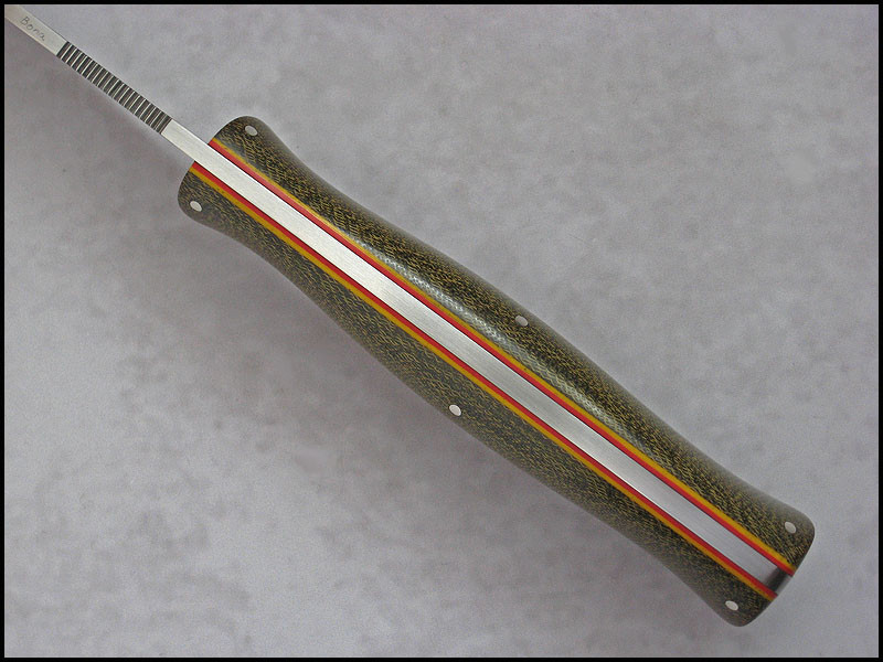 Bona The Art of Harmony Feedback: +31 / =0 / -0 Joined Apr 27, 2006 Messages 1,158 Mar 24, 2015 #1 Another Traveler for sale. steel - N690 / 3.5 mm [0.138"] length - 245 mm [9.646"] blade - 117 mm [4.606"] handle - olive canvas, yellow linen, red fiber, nickel silver sheath - leather Price - $240 SOLD Included International Priority Mail Last edited: May 19, 2015